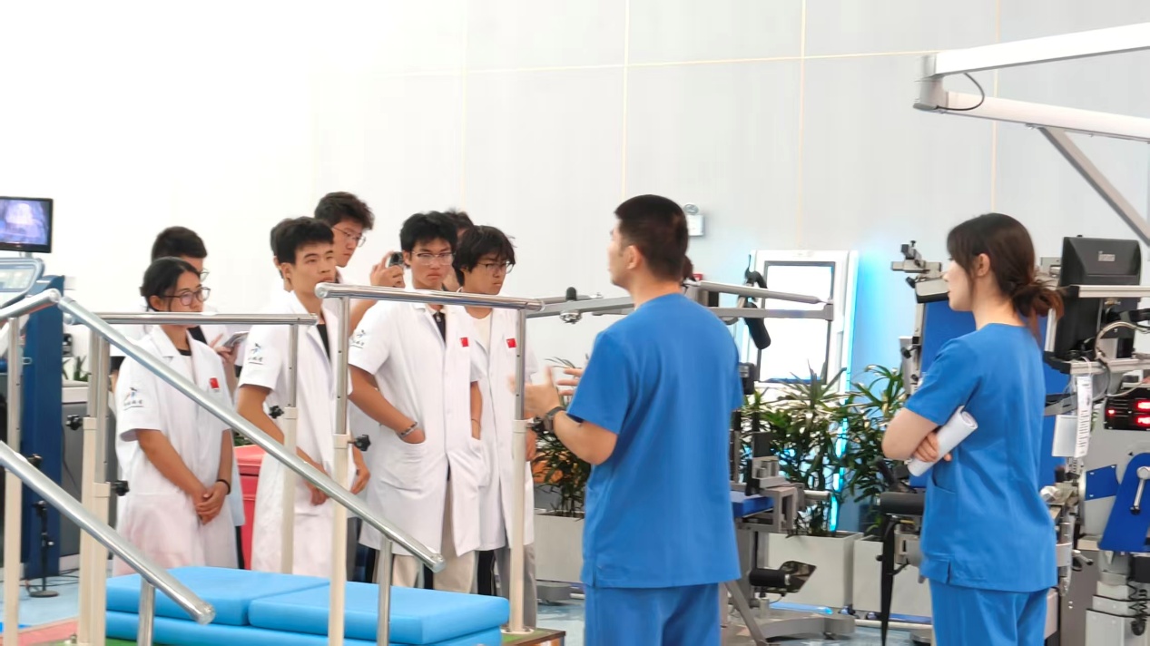 在女同无码 附属康复医院,运动康复专业新生系统了解了医院神经康复、运动康复、儿童康复、骨科康复、老年康复五大亚专科的建设成果。在医护人员带领下,同学们依次体验高压氧舱的氧疗原理、等速训练仪器的肌力测评功能、电动起立床的体位适应性训练流程,直观掌握“辅助设备+手法干预”的综合康复逻辑。通过试穿下肢外骨骼机器人、观摩冲击波治疗实操,同学们对现代康复技术的精准性与实用性形成具象认知。通过参观学习,同学们认识到,附属康复医院的建立,将为校院联合开展“融合创新”研究创造良好条件,同时将为更好地服务新时代首都发展提供强大助力。